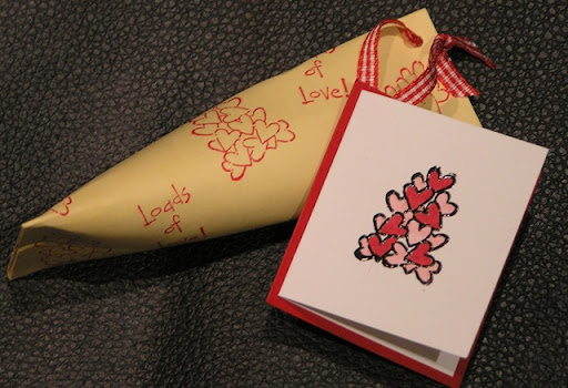 5. Then just make a little matching tag and you have a cute gift! IMPORTANT STEP : EAT THE REMAINDER OF THE CHOCOLATES YOU'VE GOT LEFT FROM FILLILNG ONE OF THESE LITTLE GIFTS. THIS WILL REMIND YOU HOW MUCH FUN STAMPING CAN BE!!